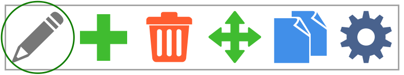 To edit content you move the mouse over the corresponding content until the toolbar appears in the upper left corner. When you click on the edit icon, the corresponding dialog opens, where you can now comfortably enter your content.