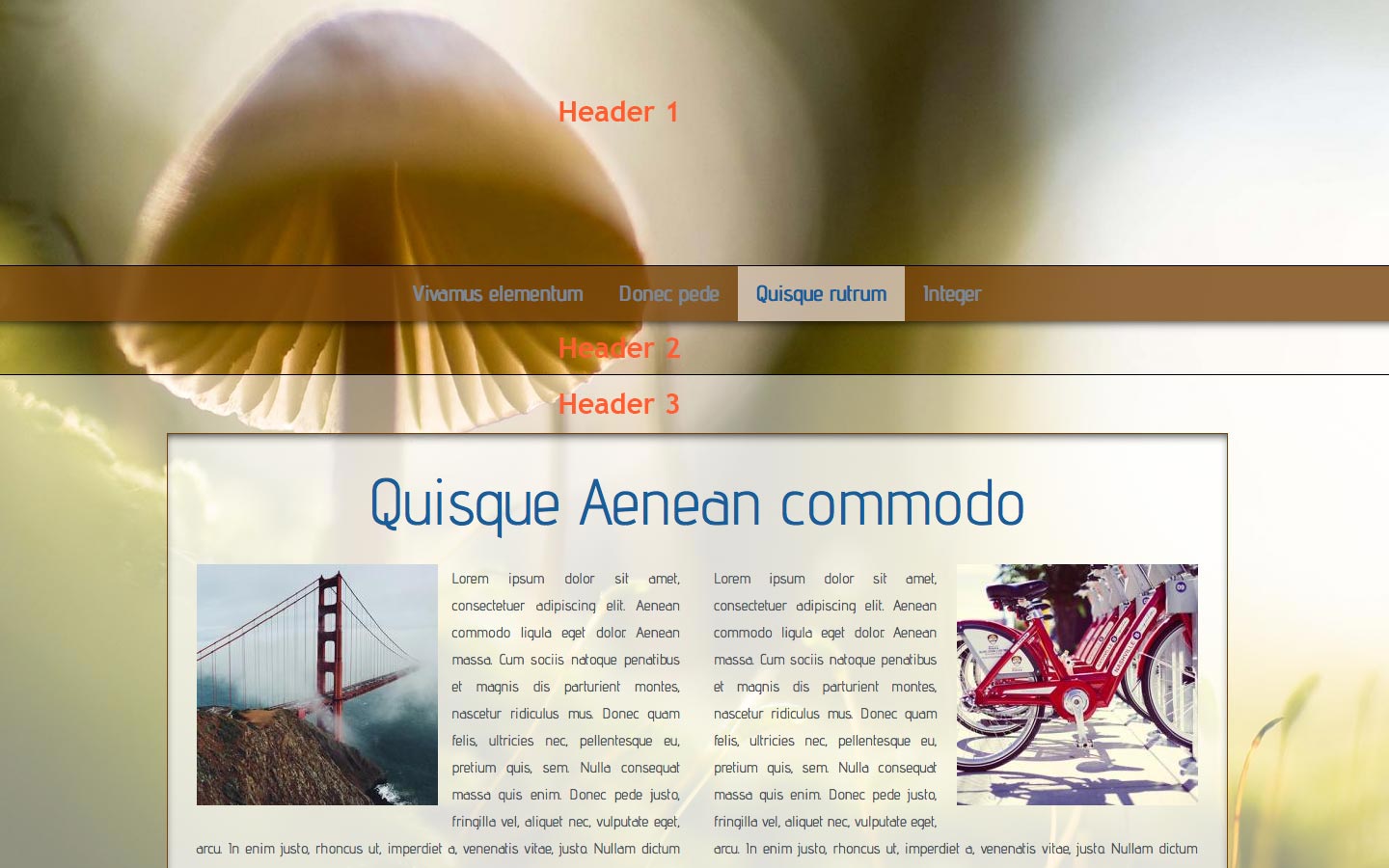 We use structure 3 or 4 for this design. If you don't need a sidebar, take 4 otherwise 3. You can change at any time. This structure allows for so-called stripes, areas that are below the normal areas and are displayed left and right across the entire browser.